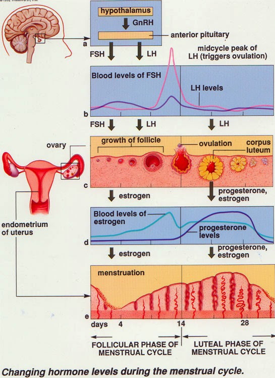 Pada permulaan siklus haid menstruasi wanita, sebuah kelenjar didalam otak melepaskan hormon yang disebut Follicle Stimulating Hormone (FSH) kedalam aliran darah sehingga membuat sel-sel telur tersebut tumbuh didalam ovarium. Salah satu atau beberapa sel telur kemudian tumbuh lebih cepat daripada sel telur lainnya dan menjadi dominant hingga kemudian mulai memproduksi hormon yang disebut estrogen yang dilepaskan kedalam aliran darah. Hormone estrogen wanita bekerjasama dengan hormone FSH membantu sel telur yang dominan tersebut tumbuh dan kemudian memberi signal kepada rahim agar mempersiapkan diri untuk menerima sel telur tersebut. Hormone estrogen wanita tersebut juga menghasilkan lendir yang lebih banyak di vagina untuk membantu kelangsungan hidup sperma setelah berhubungan intim.